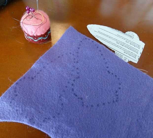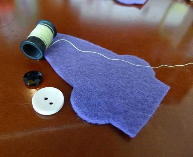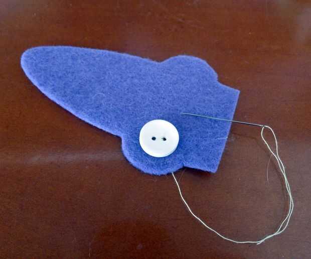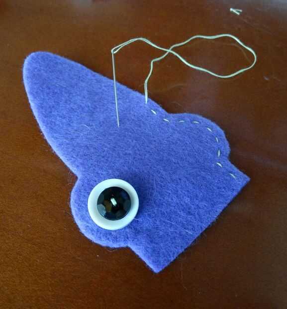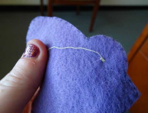Hilo de rosca seguro en la parte posterior de la pieza de fieltro donde más tarde será invisible.