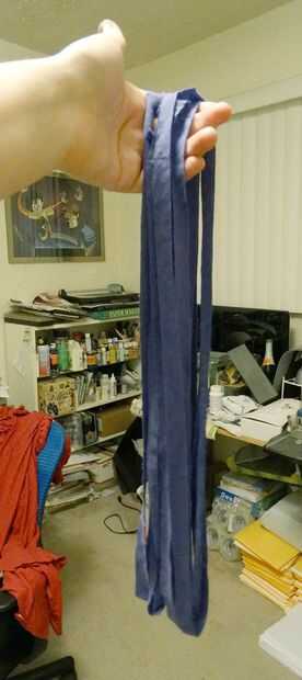 Utilice su cortador rotativo de tela para cortar tiras de 1/2 pulgada en el torso de la camisa. Si usted quiere ser técnicamente correcto, calamares tienen un total de 10 miembros. Usted puede hacer más o menos dependiente en el tamaño del cuerpo de tu squid. Desea hacer lo suficiente para que el borde inferior del cuerpo se ve cumplimentado.