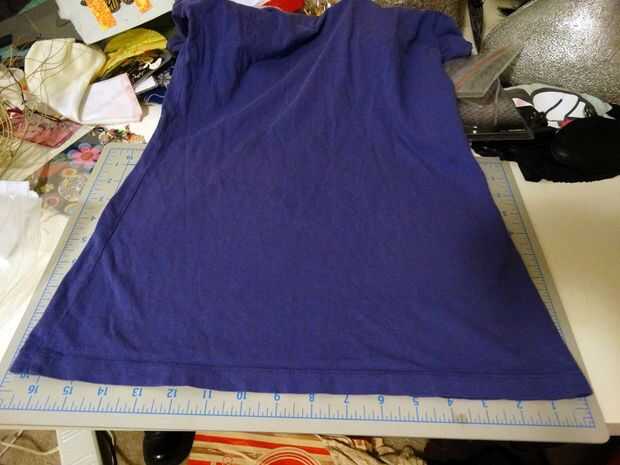 Pone su desecho camiseta hacia fuera sobre la superficie de corte designado.