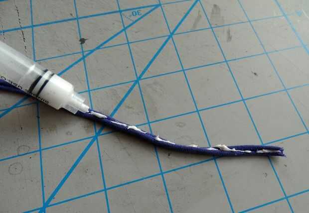 Puede aplicar el pegamento para tela con un palillo, o un mayor control puede usar una jeringa desechable. Para los nuevos en el uso de jeringas para aplicación de pegamento artesanal, siga los siguientes pasos: