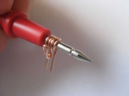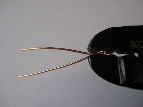 Empezar haciendo dos pequeños ganchos con un lazo en el extremo opuesto, doblando el alambre alrededor de sus alicates. Ver las fotos. O puede utilizar cualquier pequeños ganchos de metal que tienes.