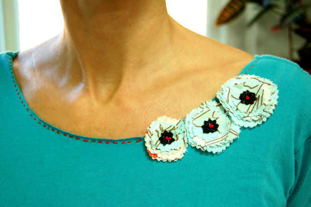 Quería darle mi camisa unos looks diferentes, por lo que he creado mis flores con broches de presión por lo que son fáciles de quitar y cambiar. También hace mucho más fácil lavar.