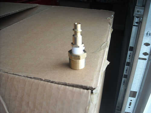 2 a 3 rondas de cinta el abrigo en la tirada de aire y enrosque en el reductor de latón de 3/4 a 1/2.