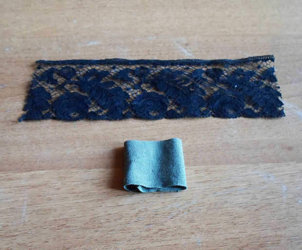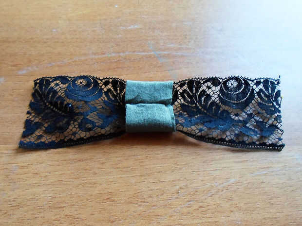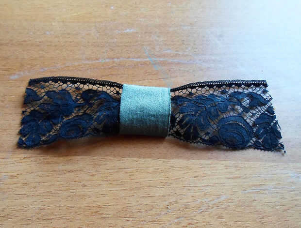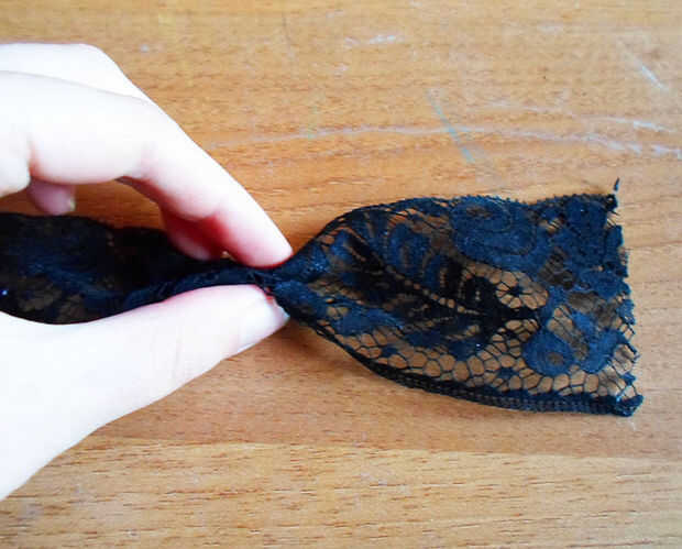 "Pellizcar" el centro del cordón con los dedos e insertarla en el pedazo de tela.