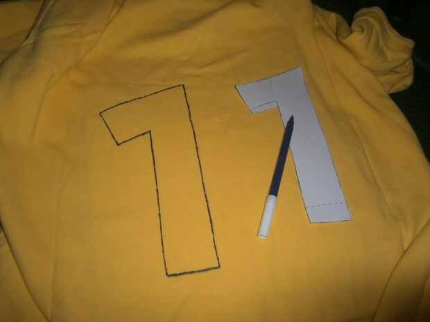 Poner las plantillas en la tela amarilla y trace con un marcador. Recorte los números y recorte hacia fuera incluso.