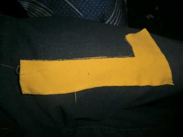 He hecho una línea de dobladillo doblando el perímetro del número debajo de la cara. Enhebre la aguja con suficiente hilo para hacer a un lado (también puede utilizar una máquina de coser). Yo echo primero que funcionó sorprendentemente bien, como no había leído en bordado o algo como eso antes de intentar esto. Después de la fundición, viajé hacia adentro y hacia afuera con el hilo, en un zig-zag como movimiento hasta que he llegado a la cima siguiente y entonces echado otra vez, simple. Hay miles, si no millones de tutoriales por ahí para echar un vistazo por ti mismo.