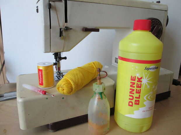 Hacer un diseño de camiseta atractiva usando cloro y un poco de creatividad.** PRECAUCIÓN - productos químicos e instrumentos afilados en este instructable **Paso 1: Todas las mercancíasSe necesita:Guantes de goma,Espacio de trabajo protegido,Gafas d