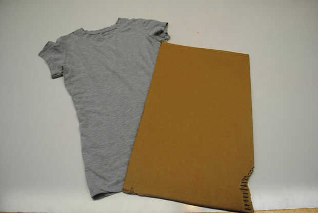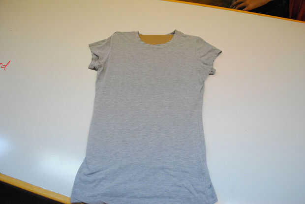 También nos agarró un pedazo de cartón del montón de chatarra para mantener rígida la camisa mientras cortamos.
