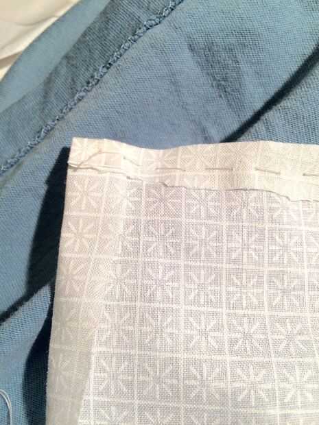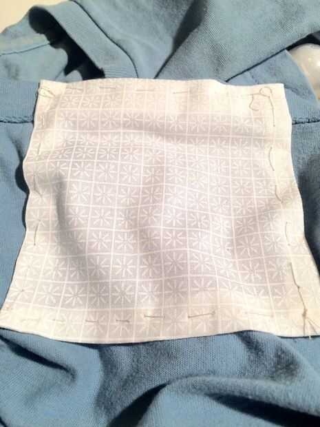 Seleccioné una camisa con un bolsillo para ocultar el corte que hice para el cableado de la luz. Corté un pequeño agujero detrás de la tela del bolsillo donde encajaría la luz a través de. Luego corté un cuadrado de tela que actuaría como un bolsillo dentro de la camisa de Linkit uno. He doblado los bordes de la tela encima y utiliza una simple puntada para sujetar a la parte inferior de la camisa en el mismo lado que la luz.