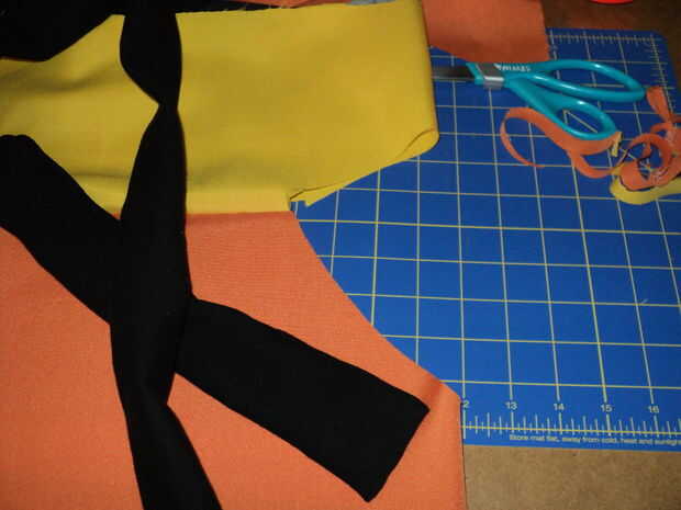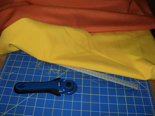 Tiene un parche de material de 8" por 28", que es el ancho de la camisa. Como con todas las medidas finales. permitir aproximadamente 1/4 de pulgada o más de margen de costura. Estoy usando a una máquina para que se recorte el áspero cortar exceso como se une la costura con la puntada de overlock. Una remalladora es también ideal para piezas de material para hacer un material de patchwork para utilizar. ¿Alguien recuerda el equipo La Vie Claire con la impresión de Mondrian?