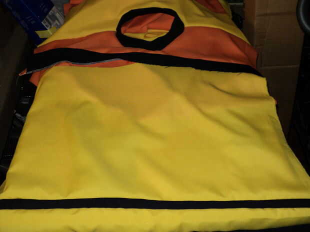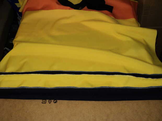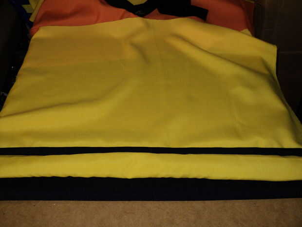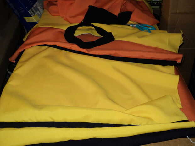 El método que utiliza fue serge las rayas que se producen para formar una sola pieza de material.