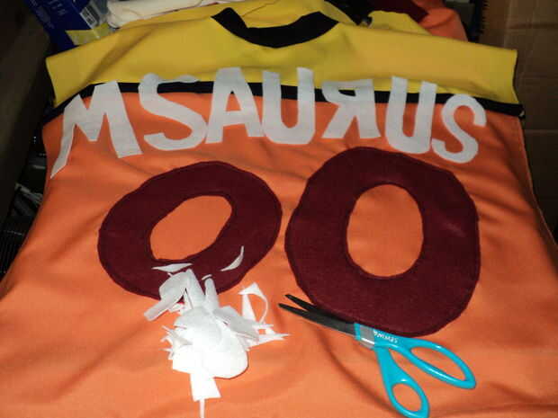 Recorte el número de equipo y nombre del jugador fuera de hojas de fieltro. Hubiera sido útil tener una lasercutter o una cortadora del patrón de silueta. Tal vez puede ganar en uno de los concursos fina de ibles.