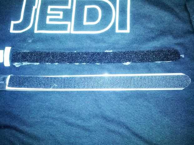 Como se muestra en la imagen, usé demasiado pegamento en el loop cinta velcro. Se aprieta a los lados. Pero debido a la altura de la cinta de Velcro es menor que la altura de la cinta EL, se oculta la mayor parte de al final. He utilizado pegamento caliente de tamaño estándar, ya es todo lo que tenía. Tal vez el mini pegamento caliente hubiera sido mejor.
