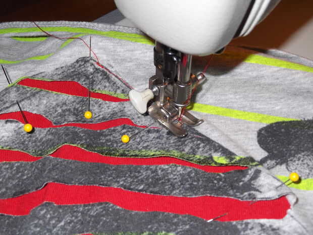 Mano o puntada de máquina coser el contorno del corazón a través de las capas como se muestra.