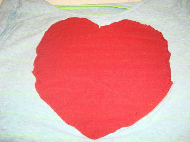 Con mucho cuidado recortar la forma del corazón (con las líneas de costuras de la forma del corazón, como una guía) para eliminar el tejido sobrante.