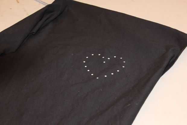 Láser corte los orificios llevados fuera de tela (o una teeshirt) de su elección. El archivo a continuación si es láser de corte de una camisa que tiene, pone junta entre, luego jugar con los ajustes en el cortador del laser para que corte la profundidad de su camisa. Esta manera, solamente corte un lado!