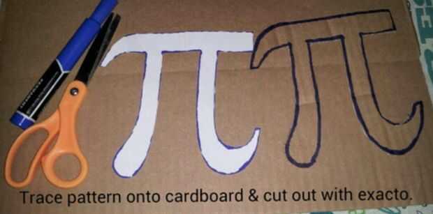 Corte a lo largo el símbolo hacia fuera y coloque encima de su cartón. Trace una línea alrededor del Pi y cortar con cuchillo. Ten cuidado. En serio, no se apresure!