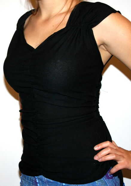 Esta prenda tiene dos tramos de ceñida (en las parte posterior/lados), un parte posterior del corsé, un escote de corazón y rouched hombros y frente.