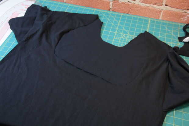 Significa los puntos originales en esta prenda la costuras de hombro (y tal vez las costuras laterales, si tu camisa tiene ésos). Tiene una tapa de tanque gigante con un escote ridículo.