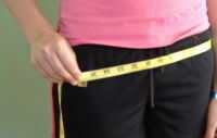 Medida donde quieres la cintura para terminar. Esto es importante para el estilo, pero es especialmente importante si utilizas a telas mixtas como lo hicimos. Ojal de algodón no tiene ningún tramo, por lo que las caderas son la circunferencia más grande que requiere poca necesidad de estiramiento. Mi hija eligió donde en sus caderas, que quería la pretina para terminar. Ella mide 35,5". Doblamos lo hasta 36" para compensar el error. Dividir por seis porque se necesitan seis paneles para hacer esta falda.