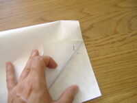 Doble el papel por la mitad para las marcas en la parte superior donde mide partido luego doblan el papel por la mitad. Asegúrese de que las marcas son de igual distancia desde la línea de doblez. En nuestro caso la medición sería 3.25" de la línea de doblez a la marca en cada lado del papel.