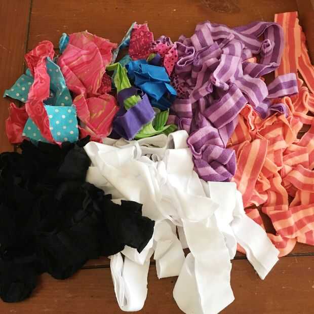 Tenga en cuenta que diferentes tejidos se comportan diferentemente. Algún material de camiseta no se debilite, pero estirará mucho. Me gustaría añadir en algún retazo porque me gusta el look de estilo bohemio deshilachados. Pero no utilizo material corroído en un proyecto que pretende darle a uno de mis mascotas o como un regalo para un niño pequeño (no eso i conozco muchos).