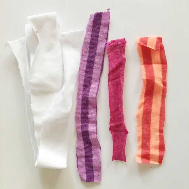 Mantener el corte hasta obtener material suficiente "materia prima" para trabajar con. Tomar las tiras y cortarlas por la mitad. Al hacer la cuerda no quiere tus franjas de igual longitud (más información sobre esta subiendo).