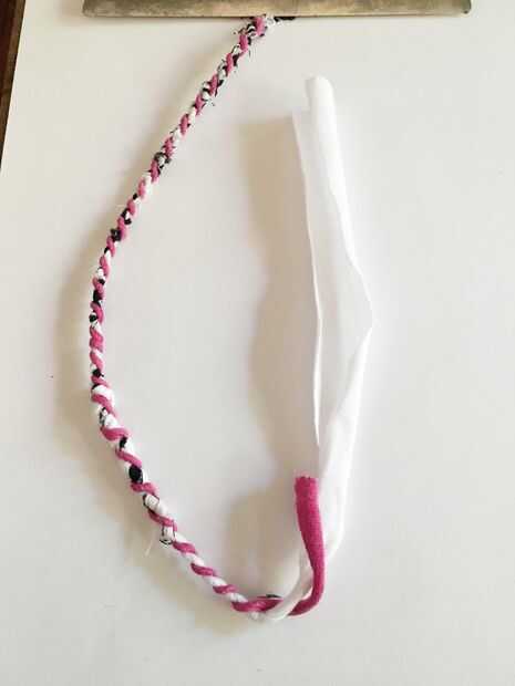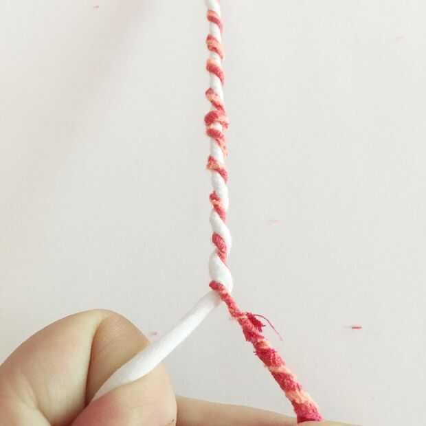 Torcer las tiras juntos es como trenzado, pero sin la tercera hebra. Tienes que mantener un asimiento apretado en cada tira. Es un poco complicado al principio, pero una vez que usted entra en un ritmo es realmente fácil y tendrás un montón de cuerda de la camisa para convertir en proyectos increíbles.