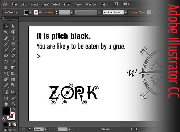 El brújula arte representa el método de navegación basada en el sentido utilizado en el juego. En el juego, los tipos de jugador "N", "Norte" o "Ir del Norte" que el personaje van al norte. Pensé que una brújula se completaría el diseño muy bien.