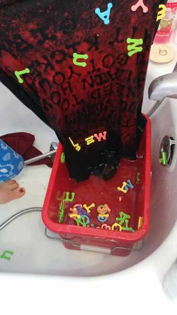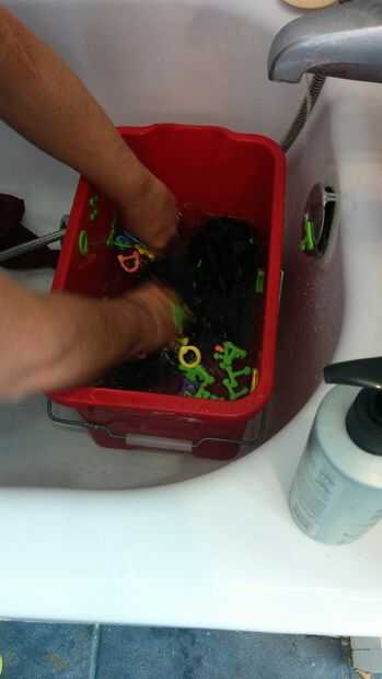 En este punto sólo enjuago y enjuague y enjuague vierten el agua un par de veces entre los enjuagues con agua y todas las letras pegajosas poco se cayeron.