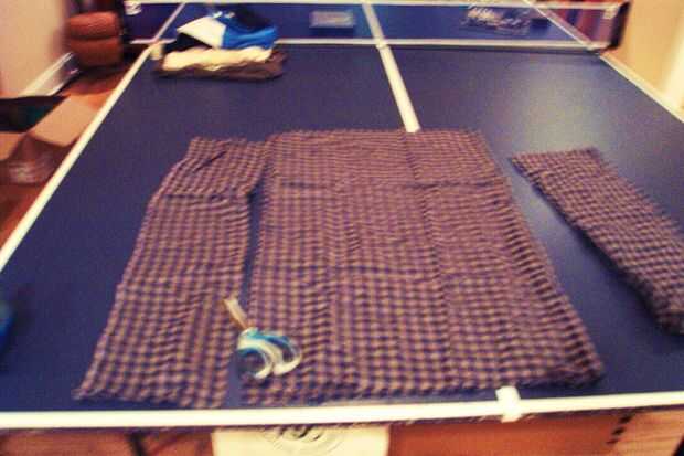 2. si el material es bastante grande, solo corte una forma de camiseta. Si no (como el mío), cortan un poco la tapa para hacer mangas de más adelante.