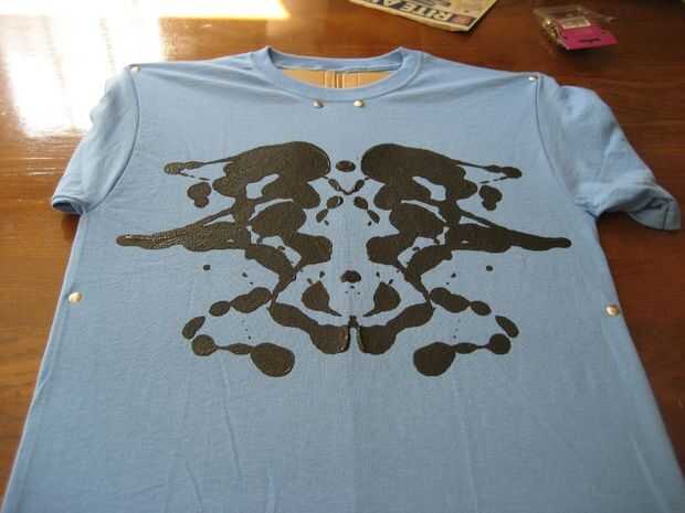 Abra la camisa de nuevo y dejar que se seque. La pintura probablemente sangrará a través de la cartulina y palillo. Usted debe ser capaz de pelar si eres cuidadoso.