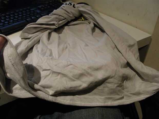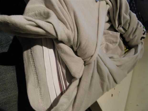 simplemente estaba navegando en Pinterest y vi este bolso y dijo a mí mismo "que es una bolsa fría... Voy a hacerlo." Así lo hice, y esto es cómo resultó. Primero corte las mangas y cuadrado hasta el cuello. Corté la manga en aproximadamente la