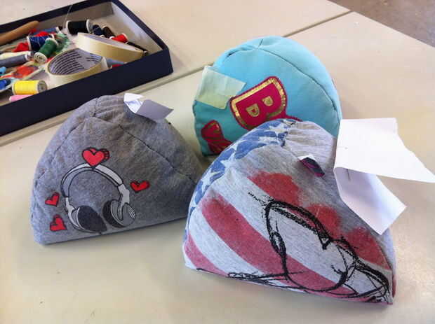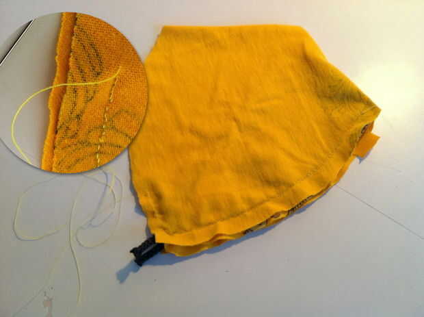 3.) uso los pespuntes de costura (imagen de verificación #3 para los plegables-detalles, revise esta para los pespuntes). Asegúrese de que su diseño se pliega al interior al iniciar (este es el truco para ocultar las costuras más adelante). Y no te olvides de coser en algunas aplicaciones, para hacer un poco más especial. Tratar de conseguir algunos materiales y la inspiración de su vieja camisa y tal vez usted puede comerciar con tus compañeros. Deje de coser antes de que su bola está 100% cerrada.