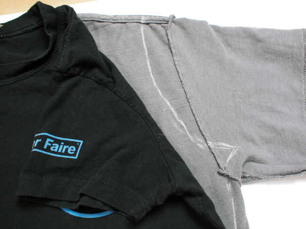 Primero, planche sus camisas y darles vuelta adentro hacia fuera. Alinear la plantilla en los hombros y traza alrededor de él con tiza de sastre.