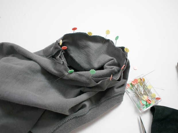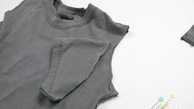 Tirón de la manga derecha hacia fuera y ponerlo dentro de la sisa de la camisa. Prender ambas mangas a la sisa.