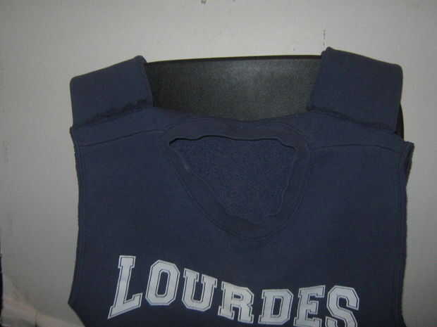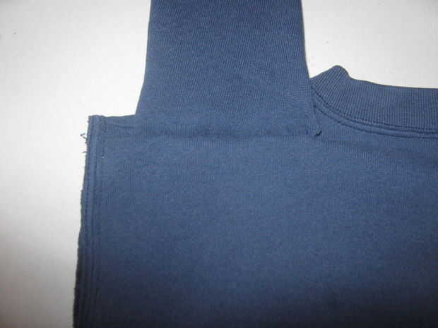 1. doble grasa mangas por la mitad. Coser las mangas en la parte posterior de la camisa por lo que corren verticalmente. Sólo coser los extremos superior e inferior, dejando cierta holgura.