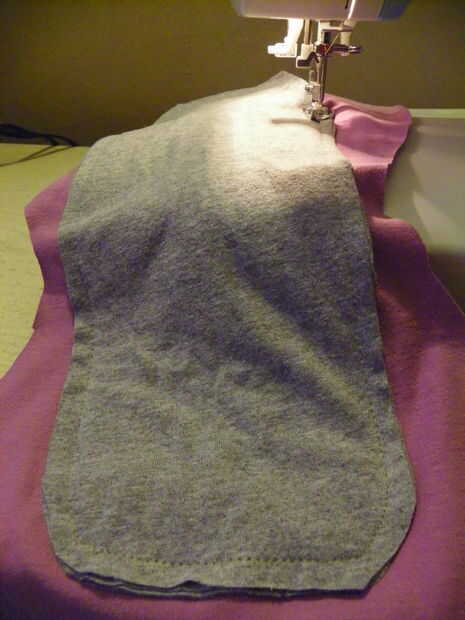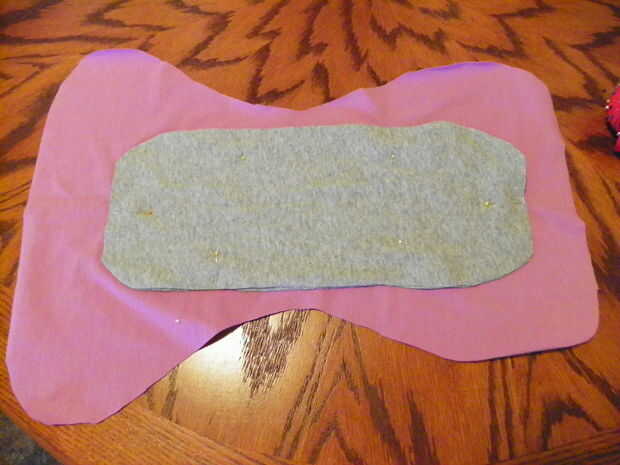 de la tela de la camiseta o la otra camiseta, corte 4 piezas 4 "x 14" capa sobre el revestimiento. coser alrededor de los bordes.