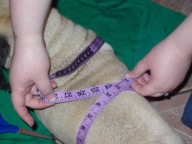 Utiliza su cinta para medir, obtener las siguientes medidas: en medio de perro (el medio del pecho es mejor) distancia desde el cuello hasta la cola (a lo largo de la parte posterior) distancia entre cuello y estómago medio hombro a codo (para determinar la longitud de la manga)