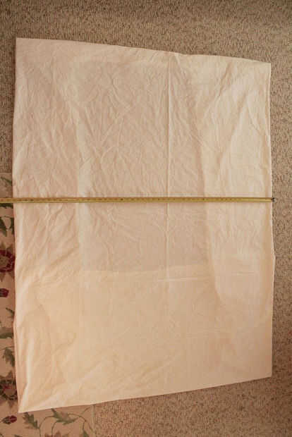 2. Coloque una hoja en el piso y doblar los bordes en el tamaño reducido, es decir, el tamaño calculados para la tapa del edredón no incluyendo las fronteras.