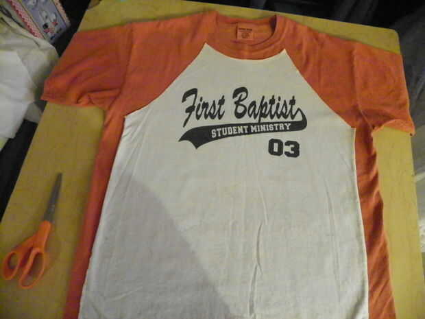 encontré una manga raglán camiseta que estaba sobre el tamaño adecuado para un patrón. Corte aparte en las costuras.
