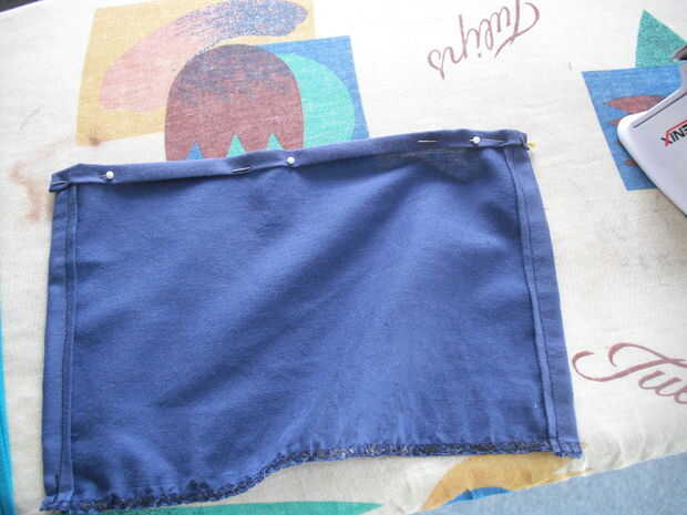 De un bolsillo, básicamente repetir el proceso de toallas de té de corte, plancha, perno, coser. Si desea añadir una decoración - coser esto antes de que el bolsillo se cose en el delantal - de lo contrario se pondrá muy difícil.