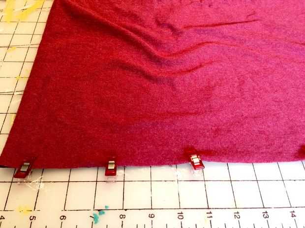 Pone la camiseta plana con bordes inferiores incluso, bordes de alfiler o clip, coser una costura de 5/8"