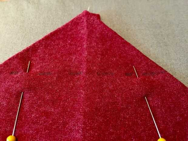 Paso 7: Para formar el fondo en caja, línea de la costura cosida con el pliegue de la costura lateral y aplanar para que forman un triángulo, prensa & pin