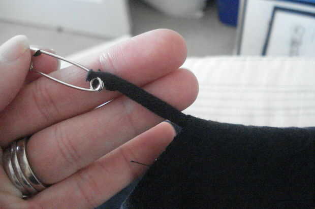 Coloque un alfiler en hilo a través de dos cubiertas.