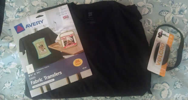 -Negro tela: lo suficiente como para hacer tanto un parche y suficiente a la línea de la camisa interior. Usé un 12 pulgadas por 12 pulgadas pieza para el parche y un 21 por 14 pulgadas para la guarnición. Sólo asegúrese de que usted puede poner una hierro en la transferencia en él. Personalmente he encontrado que personas que trabajan en tiendas de tela/Artesanía están más que felices de ayudarle a hacer selecciones.