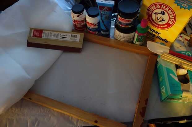 Palillos del Popsicle: remover tintas si es necesario, sobre todo si te encargo un color de la mezcla. También utilizo estas para construir las cuñas para mantener la estructura de la superficie durante la fase de empuje. (Sugerencia: construir una pila de palitos a la altura que usted necesite, luego envuélvalo con cinta para mantener en una pila. Créeme, no quieres estos móviles mientras que usted está atornillando con el marco.)