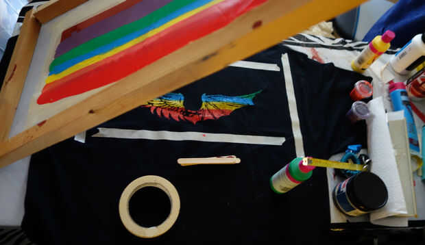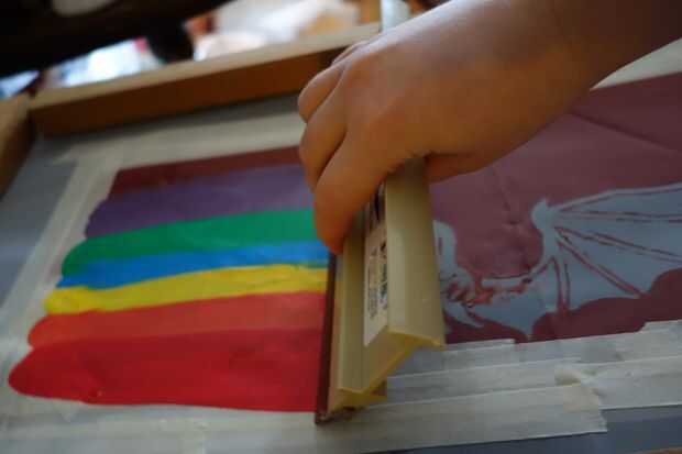 Tire de su tinta. Conjunto de la escobilla de goma detrás de su tinta en un ángulo (aproximadamente 45 grados es lo que he visto recomendado pero depende de muchos factores... tu fuerza, tu velocidad, el grueso de la tinta, etc.) y tirar hacia abajo desde la parte superior a inferior del marco, hacia usted. Use ambas manos y tratar de mantener la presión y velocidad incluso. La presión hará que la malla de abajo, hasta tocar la superficie y depósito de la tinta que forzarlo a través de la inmersión: impresión en offset como esta tiende a producir una imagen de verduras. Cuando llegue a la parte inferior y su diseño está cubierto, levante la escobilla de goma. Agarre su marco y levante hacia arriba en un movimiento suave y rápido.