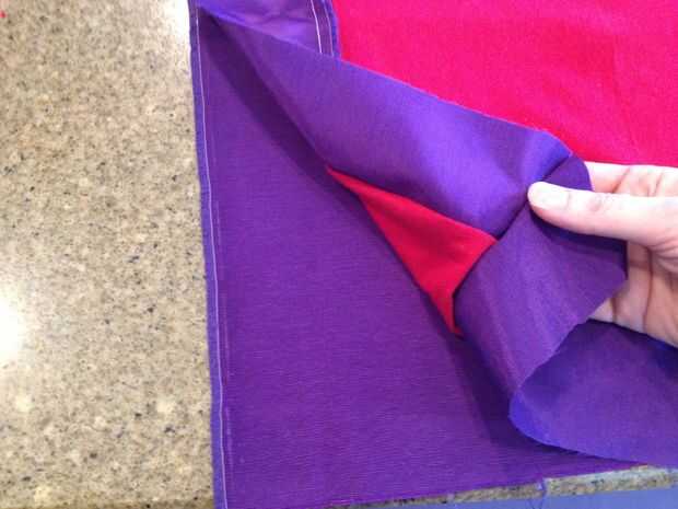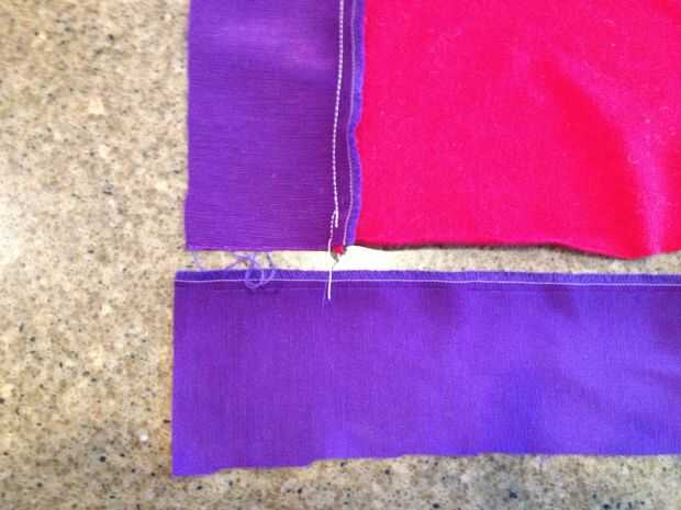 Tomar la parte delantera completa y recostarla. Colocar la hoja sobre ella y recortar la hoja del mismo tamaño que el frente del tejido. Coloque las dos partes enfrentadas y coser las piezas con una costura larga exterior, dejando una separación de 8" en la parte inferior. Utilice este espacio para girar el tejido derecho-lado-hacia fuera.
