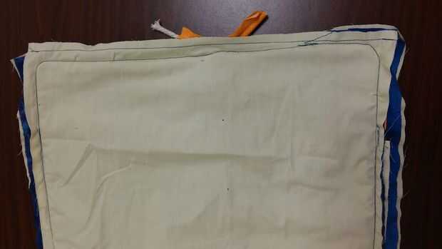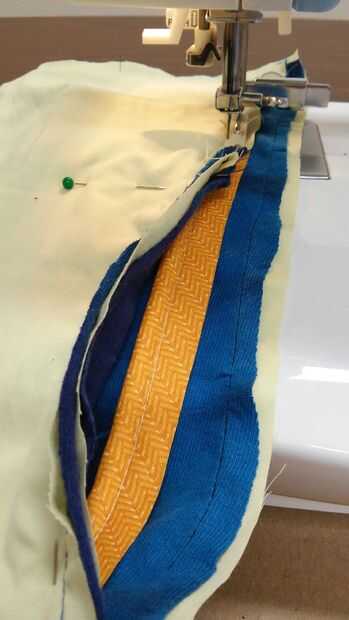 Perno de frente y vuelta almohada derecho lados juntos. Coloque la tubería entre las piezas superior e inferior del cojín, comenzando y terminando en la parte inferior de la almohadilla, superposición de unas 3 pulgadas, recorte de tubería en las esquinas. PIN. Coser alrededor del borde, usando un pie de cierre.